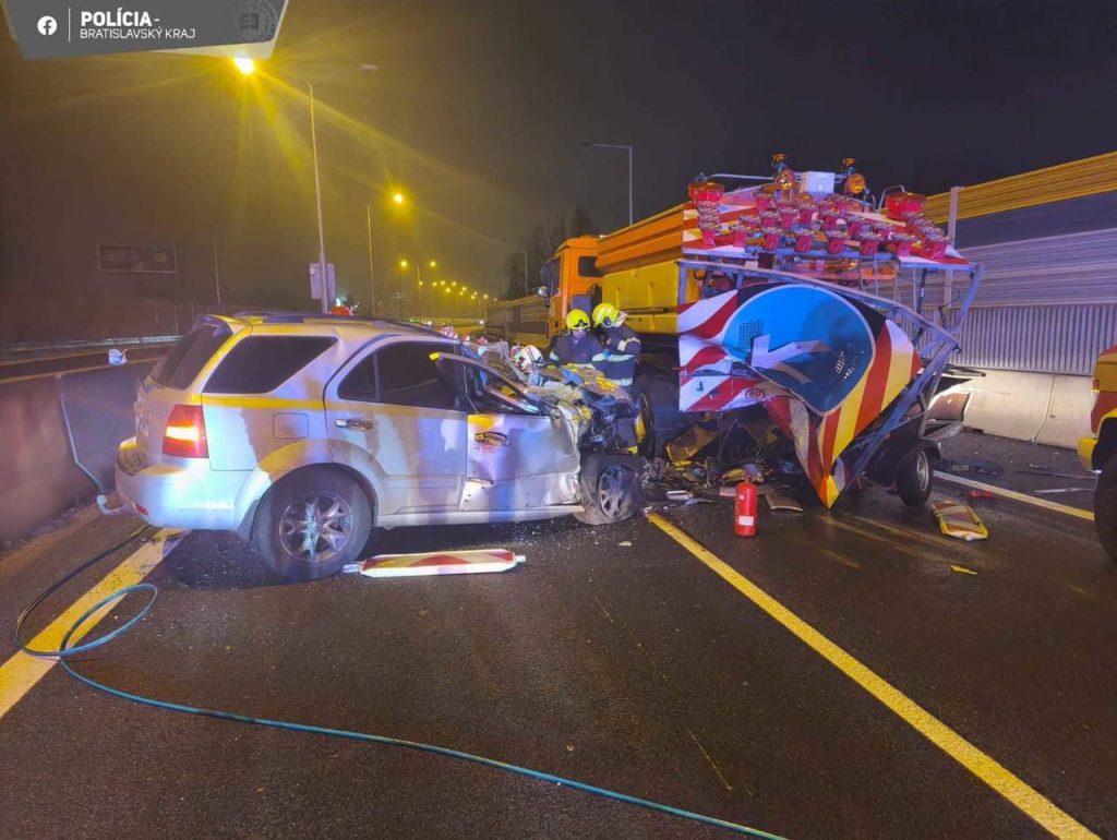 BRATISLAVA – Na diaľnici D2 za tunelom Sitina v pondelok skoro ráno narazilo auto do odstaveného vozíka Národnej diaľničnej spoločnosti. Úsek bol neprejazdný takmer dve hodiny. Pri nehode sa zranil 27-ročný vodič. Informovala o tom bratislavská krajská polícia na sociálnej sieti.